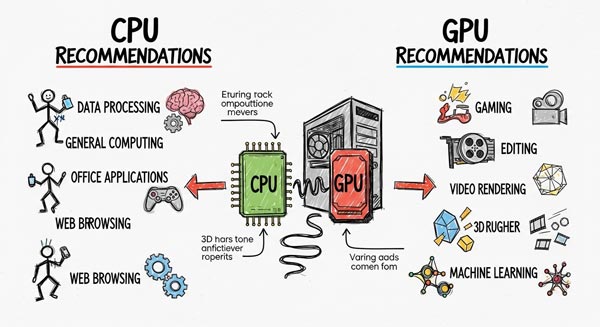 CPUとGPUは、パソコンの性能を左右する重要なコンポーネントであり、それぞれの得意な処理が異なります。