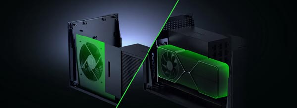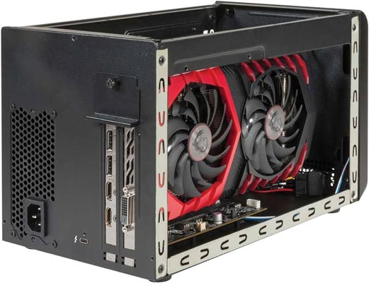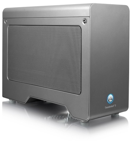 フルレングス・フルハイトの2スロットGPUを搭載でき、USB Power Deliveryによる最大100Wの給電で接続したノートPCを同時に充電できます。構造はGPUの後付けや交換が容易で、将来的なアップグレードにも向いています。