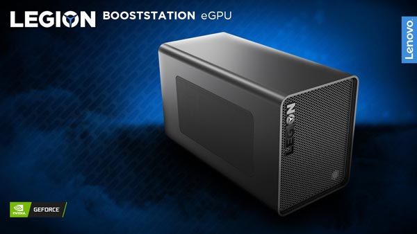 Lenovo Legion BoostBoxは、Thunderbolt 3接続の省スペースeGPUケースで、最大デュアルスロットのデスクトップGPUに対応しています。