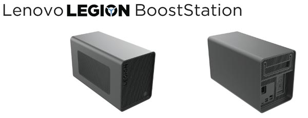 Lenovo Legion BoostStationはThunderbolt 3接続のeGPUボックスで、市販のフルサイズGPUを交換可能、ストレージ増設ベイも備える拡張性が強みです。