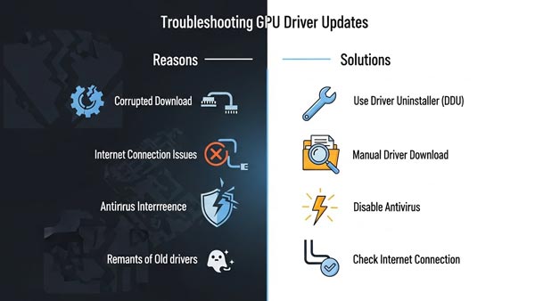 新しいGPUドライバーのインストールが失敗する主な原因の一つに、以前のバージョンのドライバーや設定ファイルがパソコン内に残っていることが挙げられます。