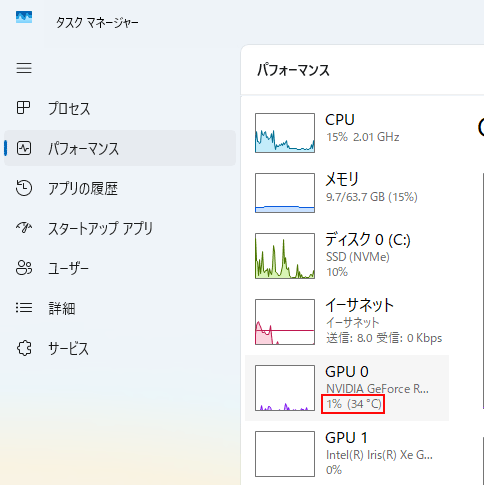 ここではWindowsでのGPUの温度を確認する方法を解説します。